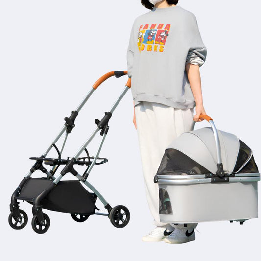 2-in-1 Foldable Aluminum Alloy Pet Stroller - Rose Gold